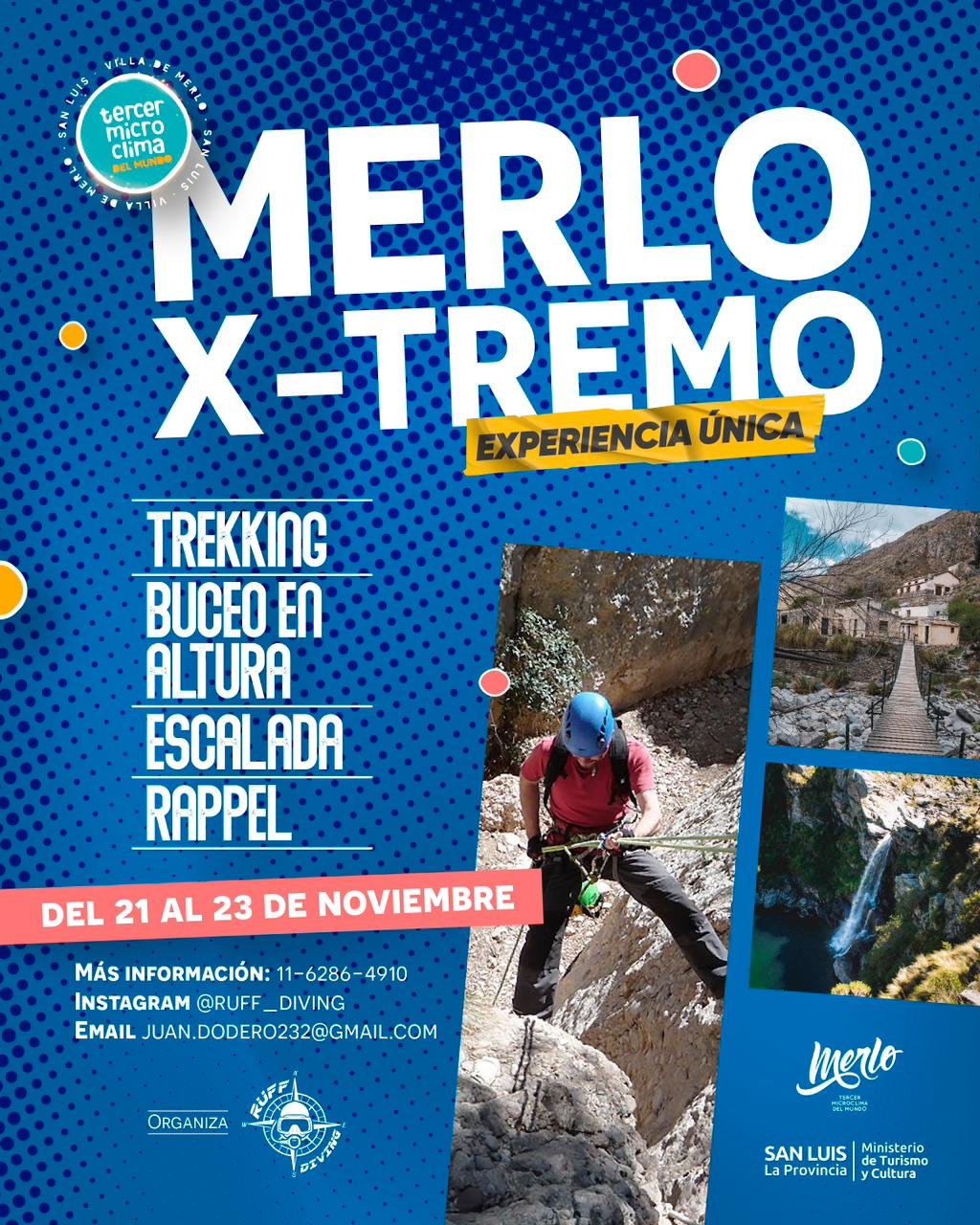 La adrenalina y la naturaleza se fusionan en una propuesta única: “Merlo Xtremo”, un evento de turismo aventura que se realizará los días viernes 21, sábado 22 y domingo 23 de noviembre de 2025 en la ciudad de Villa de Merlo, San Luis.