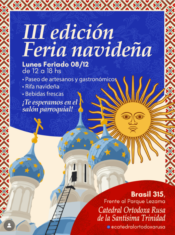 Y si la feria ya es un plan irresistible, el plus llega con la visita guiada que se ofrecerá durante la tarde (aún sin horario confirmado). Es una oportunidad única para conocer el interior de la Iglesia Ortodoxa Rusa de la Santísima Trinidad, el primer templo de esta corriente religiosa construido en Sudamérica.
