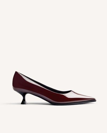 El tacón en forma de trapecio vuelve aportando un toque de originalidad a los zapatos más sencillos. Una altura cómoda para llevar todo el día sin sufrir por el dolor de pies. Es color vino tinto, uno de los más populares de 2025 que nos acompañará el año que viene también. La puntera de pico estiliza mucho y para lucirlo será muy sencillo porque va con todo. Están firmados por Gioseppo y su brillo eleva su diseño. El precio en la web oficial de El Corte Inglés es 59,95 euros.